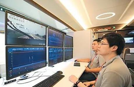 2016年7月15日,兩列中國標(biāo)準(zhǔn)動(dòng)車組在鄭徐高鐵實(shí)現(xiàn)世界首次時(shí)速420公里交會(huì)和重聯(lián)運(yùn)行。圖為鐵科院試驗(yàn)團(tuán)隊(duì)成員密切監(jiān)控列車高速運(yùn)行狀態(tài)。(圖片來源:新華視點(diǎn))