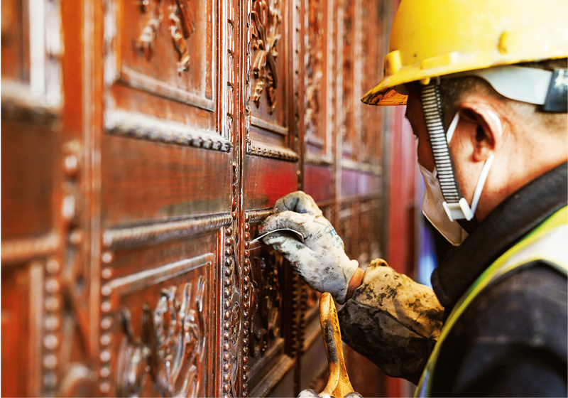 位于上海市興業(yè)路76號(hào)的中共一大會(huì)址紀(jì)念館實(shí)施修繕改造。圖為2021年3月22日,工人在清理木質(zhì)雕花板?!⌒氯A社記者 劉穎/攝