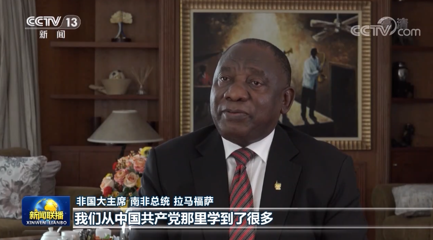 非國(guó)大主席、南非總統(tǒng) 拉馬福薩:我們從中國(guó)共產(chǎn)黨那里學(xué)到了很多。今天的中國(guó)在改善人民生活、消除貧困等方面走在世界前列。中國(guó)共產(chǎn)黨是以人民為中心的政黨,我們通過(guò)此次峰會(huì)再次了解到,政黨要致力于為國(guó)家謀發(fā)展,為人民謀幸福,人民利益高于一切。