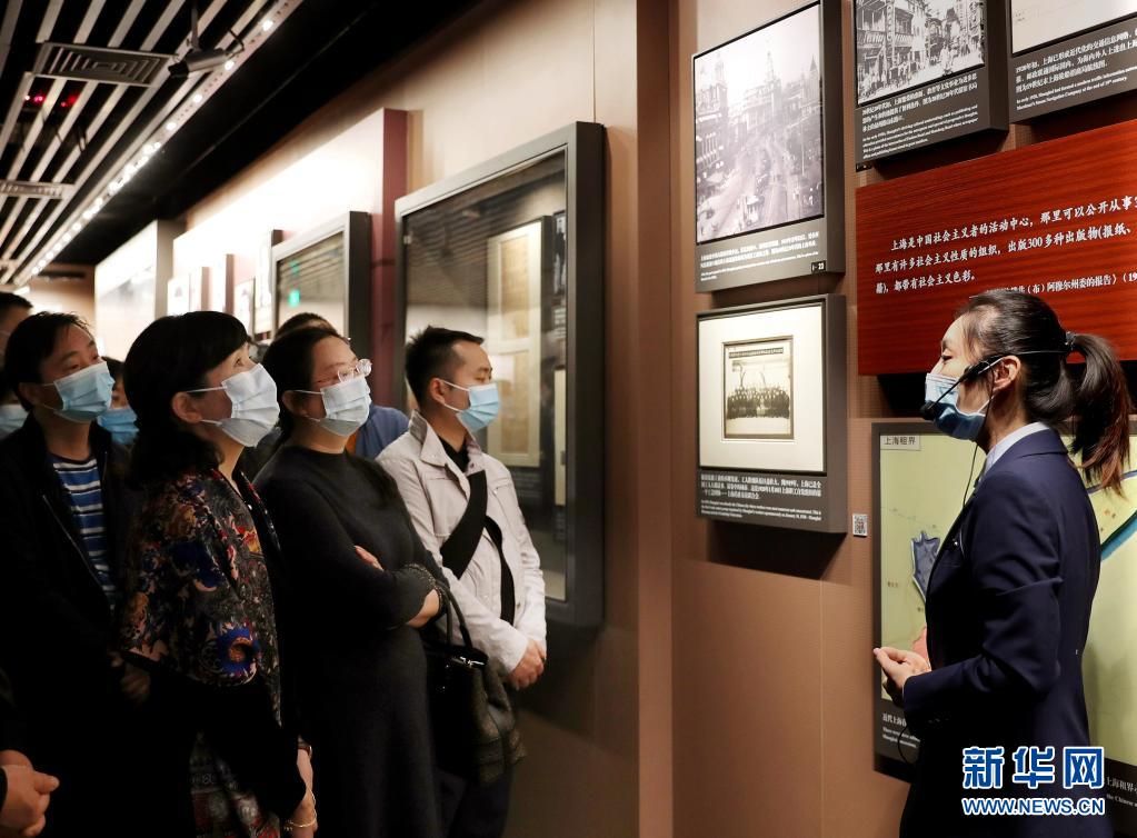 人們?cè)谏虾J袡n案館外灘館參觀“真理之甘 信仰之源——紀(jì)念陳望道首譯《共產(chǎn)黨宣言》中文全譯本100周年主題展”(2020年6月24日攝)。新華社記者 劉穎 攝