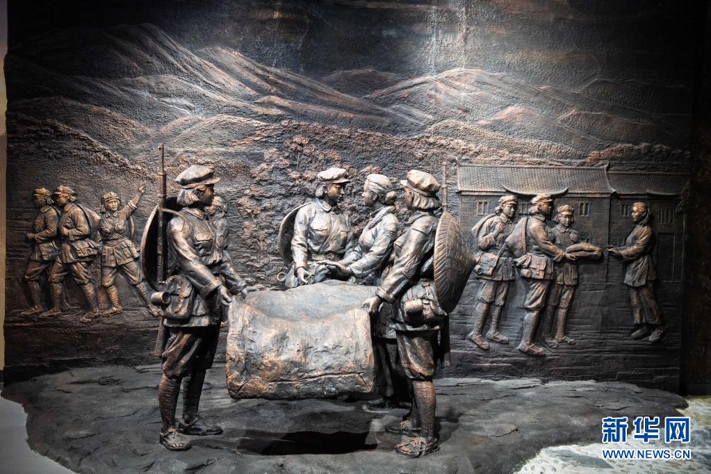 這是在湖南省郴州市汝城縣沙洲瑤族村“半條被子的溫暖”專(zhuān)題陳列館拍攝的“半條被子”故事雕塑(2020年9月17日攝)。新華社記者 陳思汗 攝