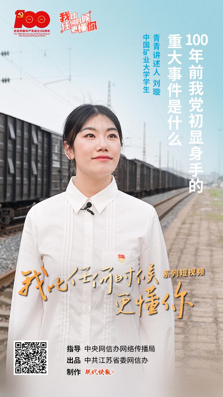 8 月 10 日," 我比任何時(shí)候更懂你 " 系列短視頻第 17 集《100 年前我黨初顯身手的重大事件是什么?》上線,本集青青講述人是中國(guó)礦業(yè)大學(xué)的碩士研究生劉璇。