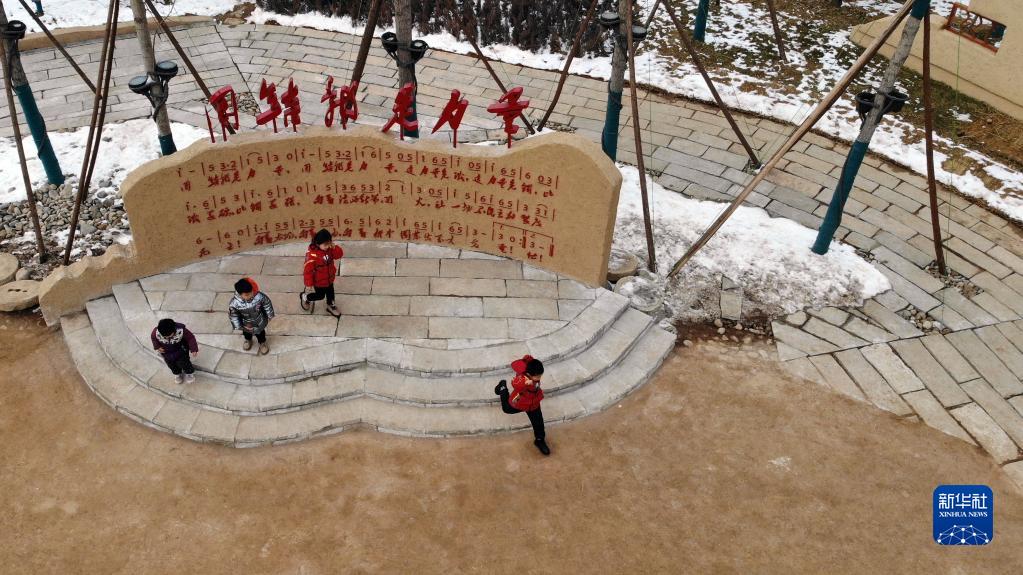 1月28日,小朋友在河北省平山縣西柏坡鎮(zhèn)北莊村(無(wú)人機(jī)照片)。新華社記者 駱學(xué)峰 攝