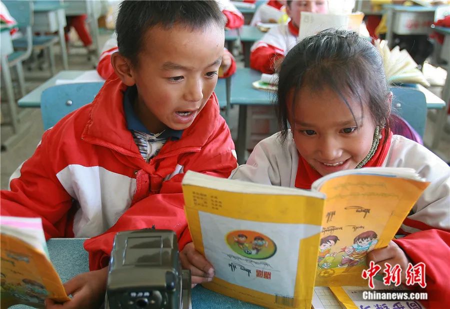 西藏日喀則市上海實驗學(xué)校的課堂上,孩子們在朗讀課文。張學(xué)軍 攝
