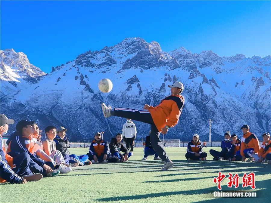 2022年11月25日,西藏那曲市嘉黎縣中學(xué)的高原球場上學(xué)生們在進(jìn)行足球訓(xùn)練。據(jù)了解,這座海拔4500米的高原球場是全校2500余名學(xué)生上體育課的地方,也是訓(xùn)練足球的場地。色曲多吉 攝