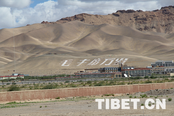 中國(guó)西藏網(wǎng)訊 進(jìn)入阿里地區(qū)首府噶爾縣獅泉河鎮(zhèn)時(shí),獅泉河城北山坡上“毛主席萬(wàn)歲”五個(gè)巨字格外醒目,當(dāng)?shù)厝擞H切地稱之為“萬(wàn)歲山”。