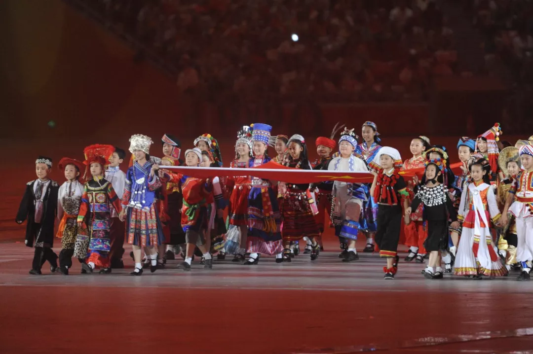 在2008年北京奧運(yùn)會(huì)開(kāi)幕式上,各民族兒童在《歌唱祖國(guó)》的旋律中簇?fù)碇r艷的中國(guó)國(guó)旗入場(chǎng)。(資料圖片)