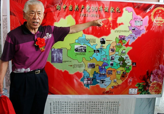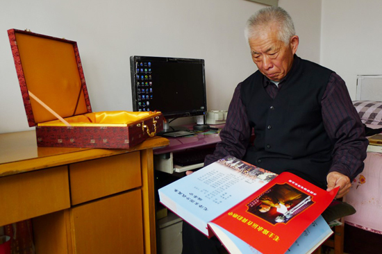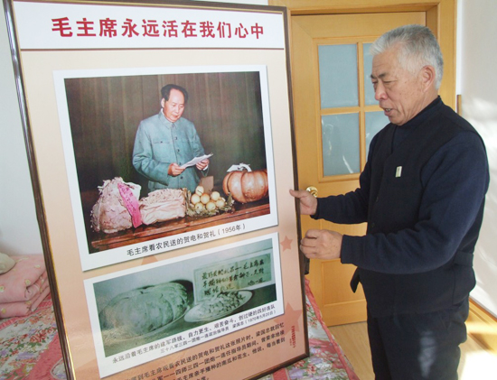 當(dāng)年,梁國忠在38軍114師341團(tuán)炮一連任指導(dǎo)員的時候,連隊(duì)曾榮幸地接受了毛主席轉(zhuǎn)贈的、也是他自己親手播種的南瓜和花生。這一幕,感染了連隊(duì)中的每一名戰(zhàn)士,“主席每天日理萬機(jī),還能想著我們這些普通士兵!”看著桌上的南瓜與花生,梁國忠眼中噙滿了淚水。為了記住這段歷史,梁國忠還特意把當(dāng)年毛主席送給他們連隊(duì)的“南瓜與花生”的這幅珍貴照片親自給保存了下來。梁國忠說,“每當(dāng)看到這張照片就好像親眼見到了毛主席?!?/p> 立志展遍全中國,永遠(yuǎn)不忘毛主席