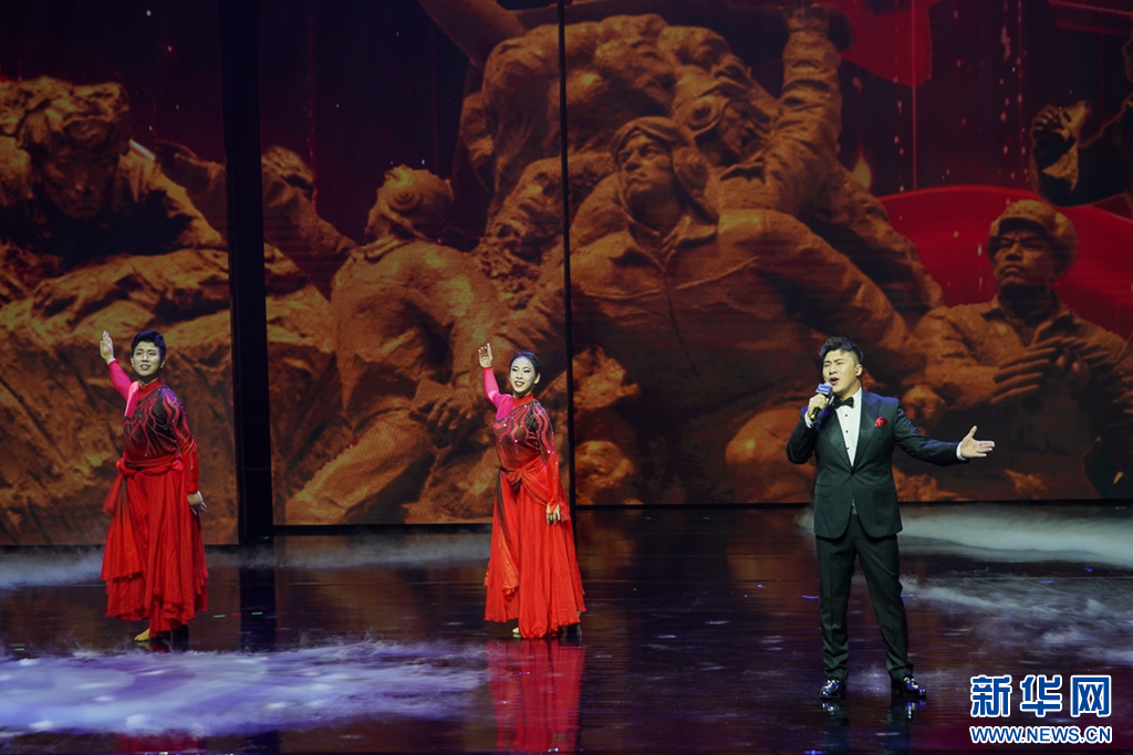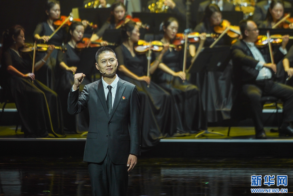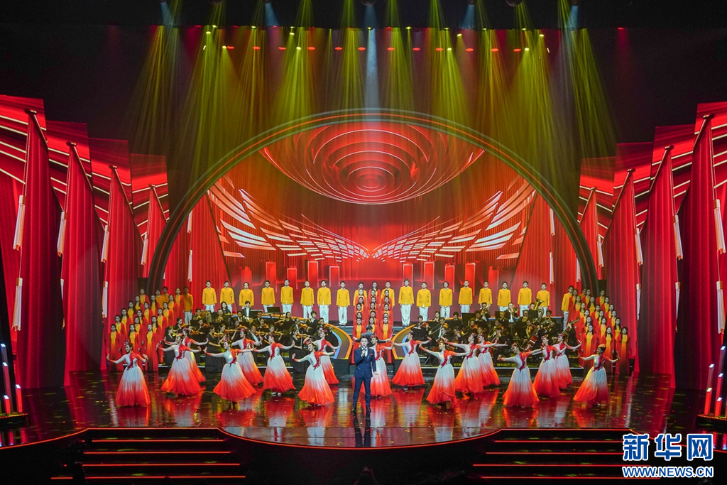 這是7月17日晚上拍攝到的晚會尾聲,交響合唱《人民至上》。新華網(wǎng) 肖和勇 攝