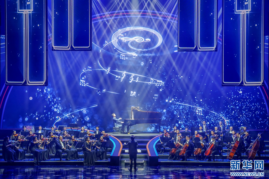 這是7月17日晚上拍攝到的鋼琴協(xié)奏曲表演《我愛鼓浪嶼》。新華網(wǎng) 肖和勇 攝