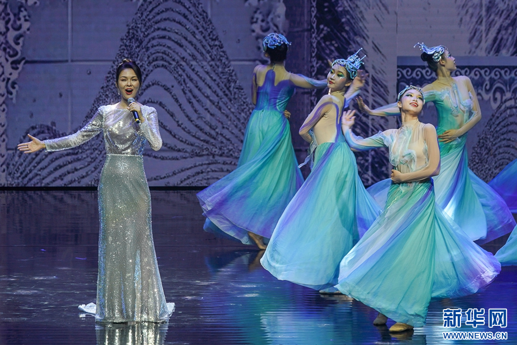 7月17日,青年歌手龔爽在演唱歌曲《山?!?。新華網(wǎng) 肖和勇 攝