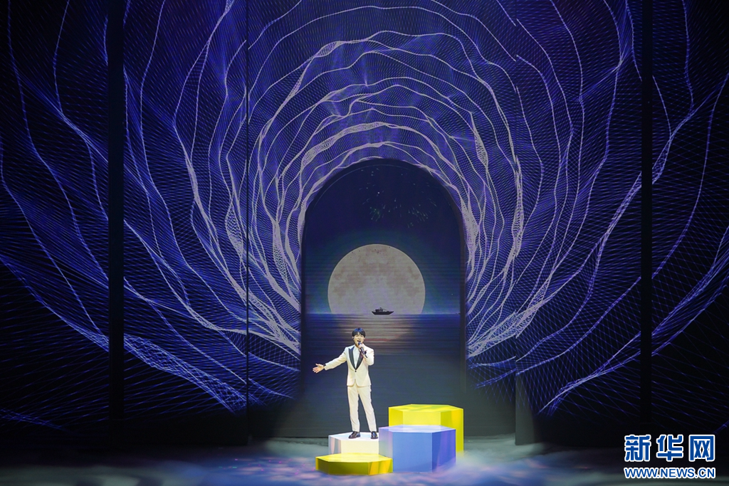 7月17日晚上,青年歌手周深在演唱歌曲《夢想的遠(yuǎn)征》。新華網(wǎng) 肖和勇 攝