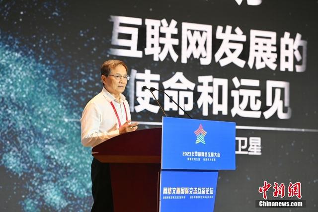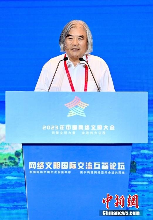 7月18日,2023年中國網(wǎng)絡文明大會網(wǎng)絡文明國際交流互鑒論壇在廈門舉辦。中外嘉賓圍繞加強網(wǎng)絡文明交流、互鑒、共存等話題展開探討。圖為光明日報社原副總編輯、浙大城市學院文明與傳播研究院研究員沈衛(wèi)星作主題演講。中新社記者 王東明 攝