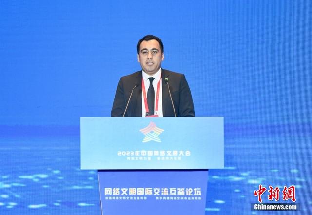 7月18日,2023年中國網(wǎng)絡文明大會網(wǎng)絡文明國際交流互鑒論壇在廈門舉辦。中外嘉賓圍繞加強網(wǎng)絡文明交流、互鑒、共存等話題展開探討。圖為中國石油大學(北京)土庫曼斯坦籍來華留學生若賀曼作主題演講。中新社記者 王東明 攝