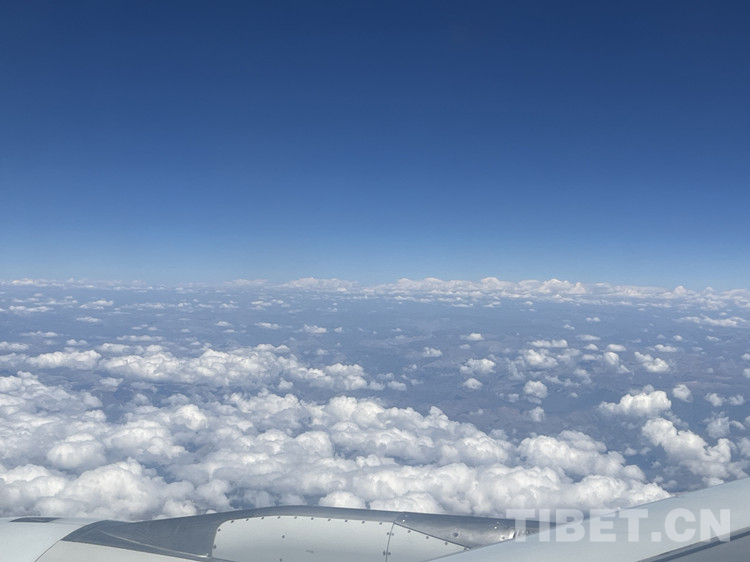 圖為記者一行乘飛機(jī)進(jìn)藏,隨手拍下的云海 攝影:王茜